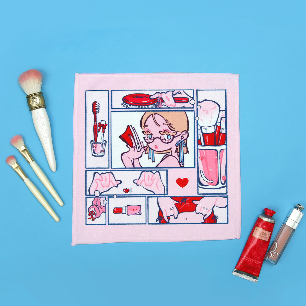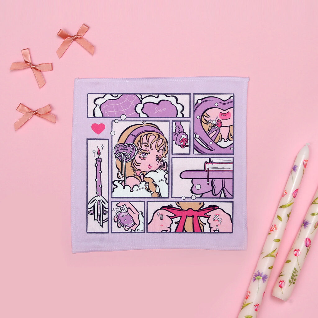 コミックのワンシーンのように切り取られたデザインのハンドタオル2種は、使うたびにときめく作品をプリント💖