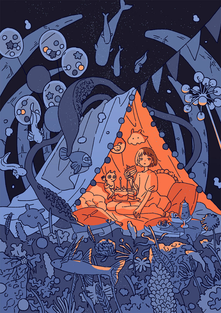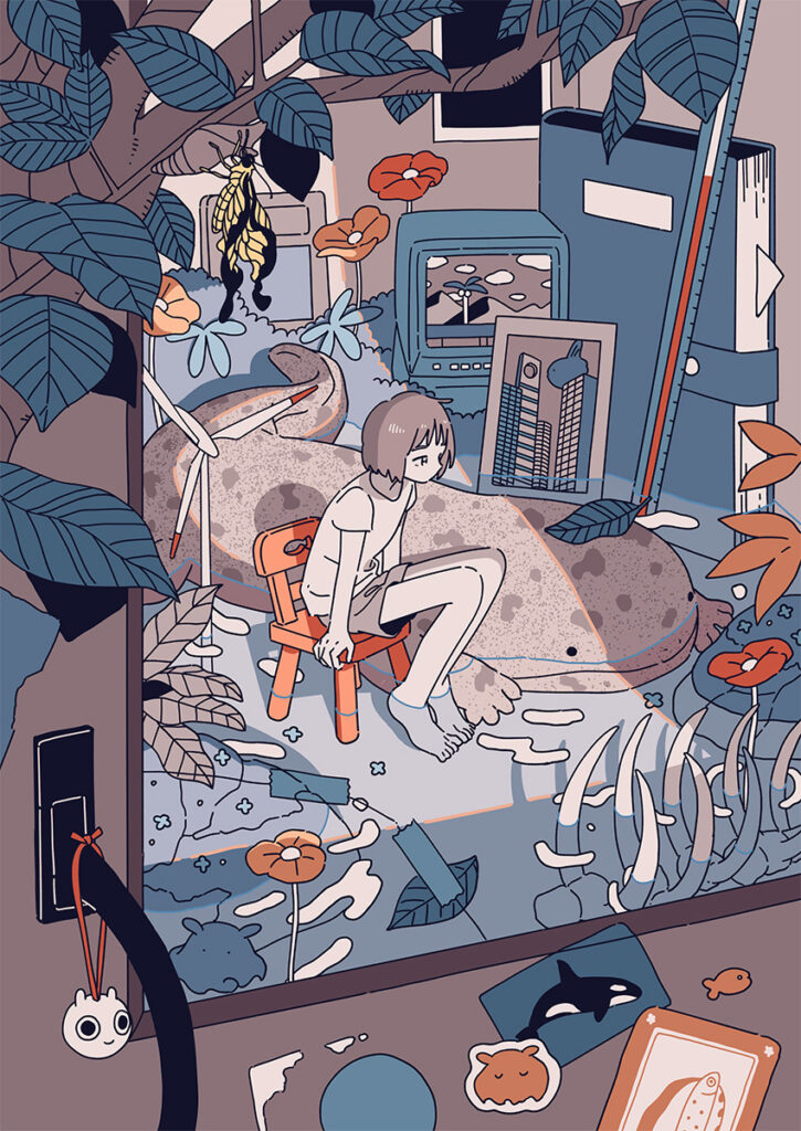 ―ありがとうございます。その中で、キャラオンリーでなく、空間を描かれたり、生き物がたくさん出てきたり、という作風に行き着いたのには、理由があったのでしょうか?