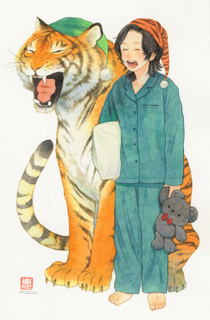 Amii:今は人物と動物をメインに描いているのですが、明確に今の作風になったきっかけは2018年に描いた年賀状のイラストでした。