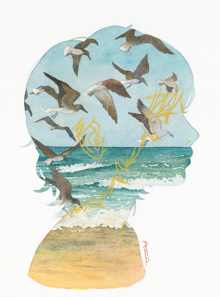 Amii:普段、仕事で描いている絵は背景ですが、作家として描いている絵は主に人物と動物がメインで背景がないので、私の中では別ものとして認識しているんですね。