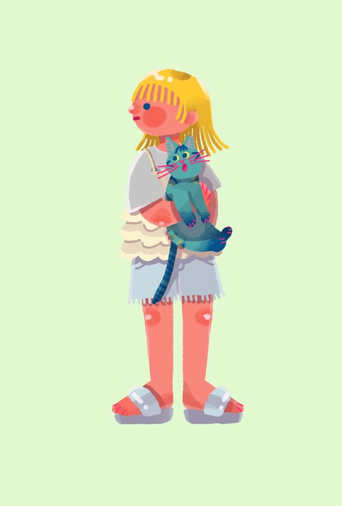 あとは、スプラトゥーンというゲームがとても好きで、高校生の時からプレイしていたのですが、あのキャラクター頭身やグラフィカルなデザイン、色遣いは、影響を受けているかもしれません。