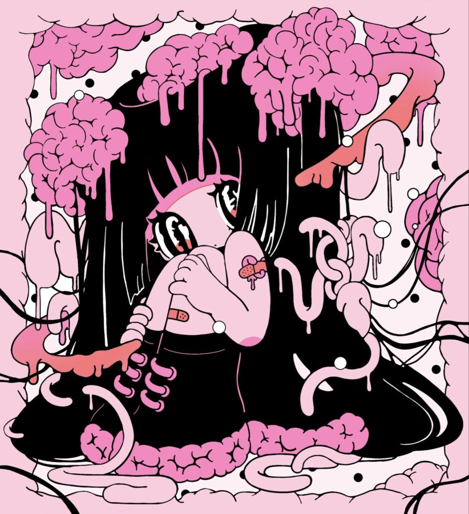 自分で描いていて気持ちの良い線を意識しているのですけれど、ちょっと溶けるようなラインなどを中心に描いて埋めていく、みたいな作業が好きなんですよね。