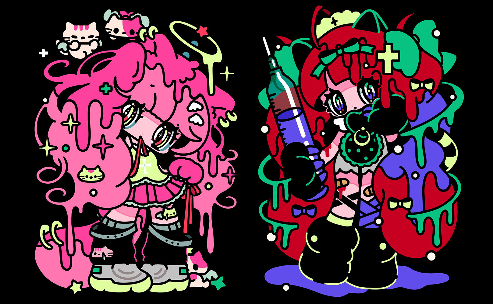 背景が黒でちょっと格好良さもありつつ、色味は可愛く、という部分のバランスを考えた結果、今の表現になっているのかなと思います。